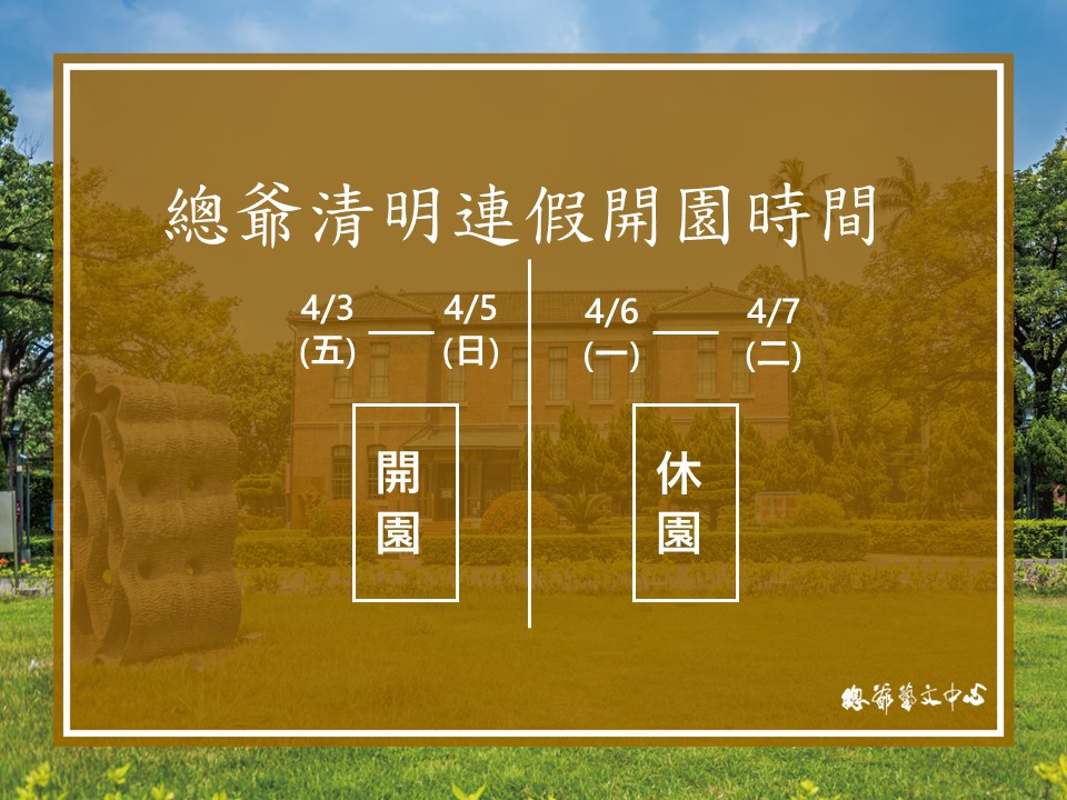 清明連假期間,本園區開放時間如下: