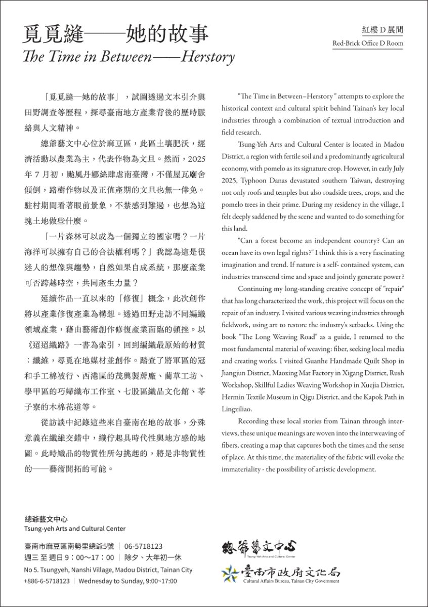 展覽名稱|【覓覓縫一她的故事】劉鳳鴒駐村成果展